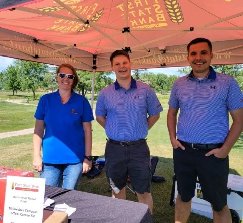 | Proud to have supported the 1st Pipestone Corn and Soybean Growers Golf Outing and Steak Supper at the Pipestone Country Club. Additionally, we gave away a Milwaukee Impact Driver and Drill for The Shortest Putt Missed on hole number 5! Thank you, area farmers, for your support. | First State Bank Southwest prides itself on our employees volunteering in our communities. Brad Meester, our Worthington Market President, serves on the Nobles County Extension Committee with Robert Paplow (Nobles County Commissioner) and Joyce Jacobs (Nobles County Auditor Treasure) pictured. At the Nobles County Fair, the trio presented on behalf of the Nobles County Extension board as well as the University of Minnesota Extension, Aaron and Kia Nystrom, the 2022 Nobles County Farm Family of the Year Award. Aaron and Kia Nystrom are the fourth generation of the Nystroms' to live on the original family's homestead. |